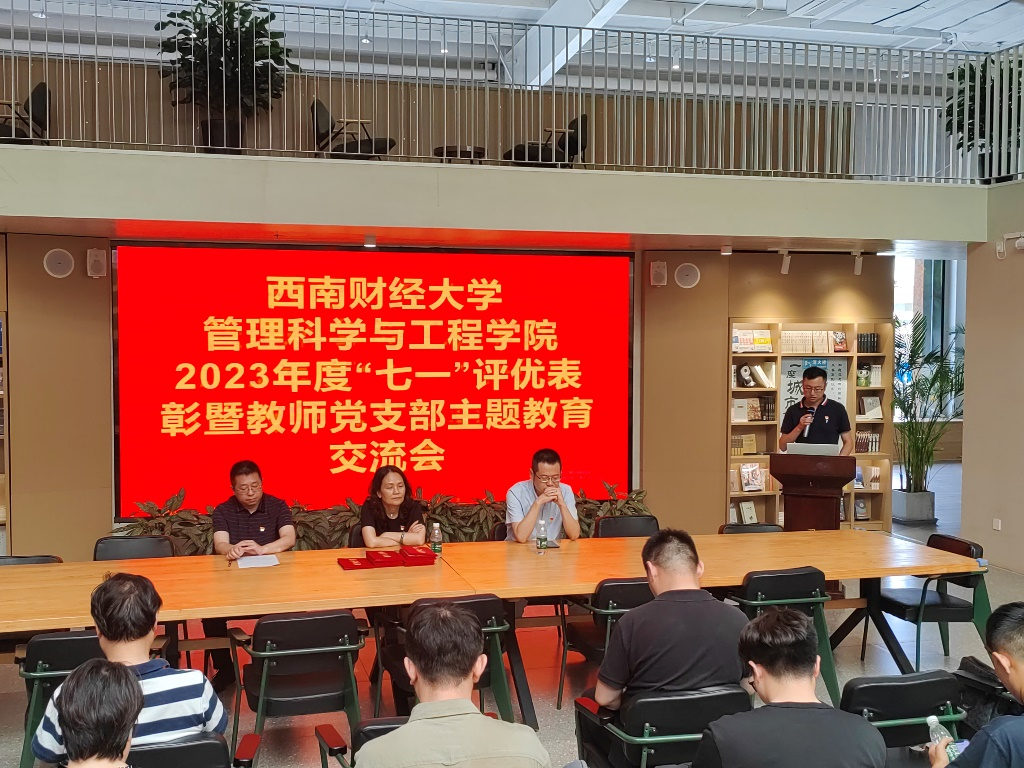 学院还开展了2023年度“七一”评优表彰暨教师党支部开展主题教育交流发言,学院党委书记周敏为优秀党员、优秀党务工作者、先进基层党组织学生第二支部获奖集体和个人代表颁发了荣誉证书,其中,优秀党支部支委梁倩,优秀党务工作者谢志龙、王萍,分别作了交流发言。