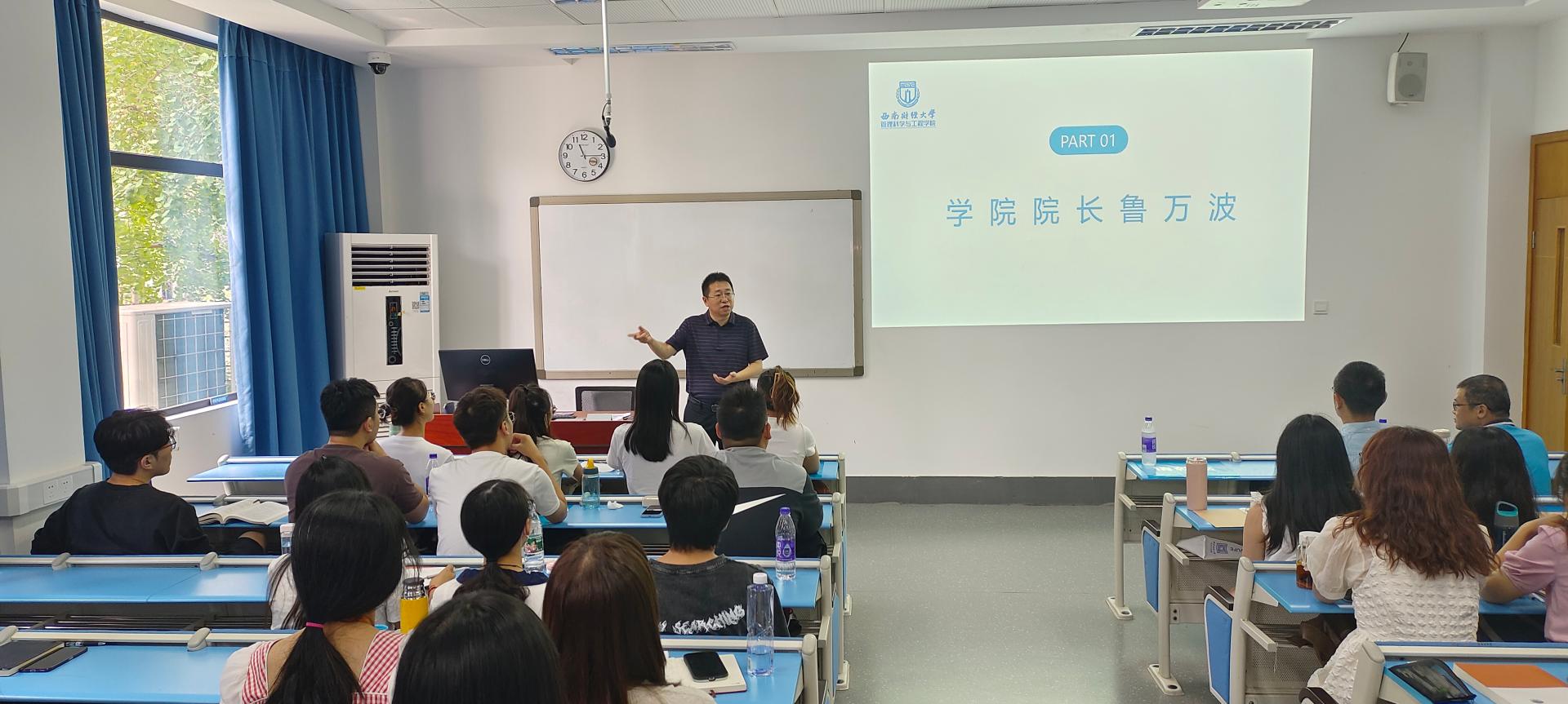 首先,院长鲁万波代表学院对全体新生表示热烈欢迎,他介绍了学院发展历史、师资力量、专业设置和科研成果,同时也对新生即将开启的研究生生涯寄予希望和期许,他鼓励同学们课内努力汲取专业知识,课外紧跟导师开拓视野,希望同学们勇于发扬互助与合作精神,在学校增长实干本领,磨练坚强意志,成长为可担时代重任的新时代青年。
