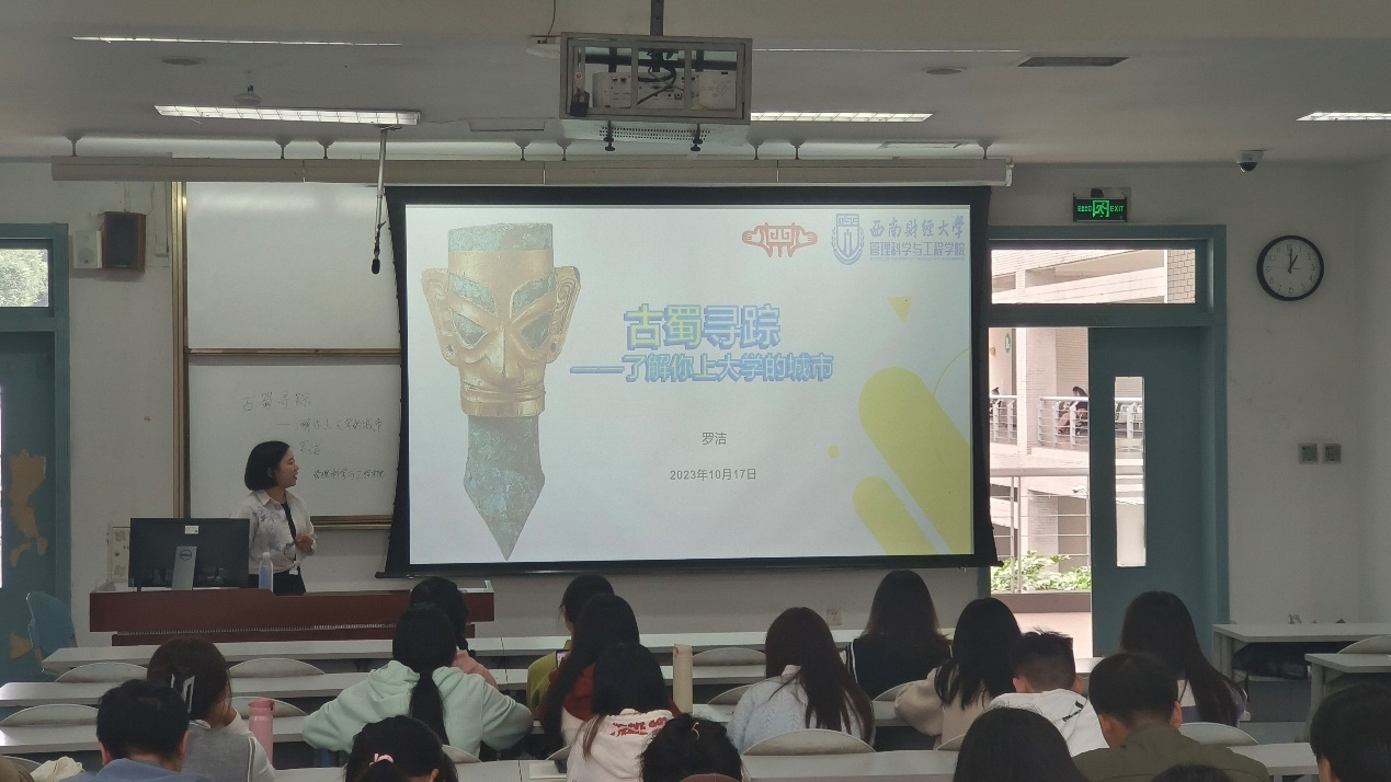 在经世楼F201举办“古蜀寻踪——了解你上大学的城市”文化素质讲座,主讲人为中国博物馆协会会员、四川博物院志愿者委员会委员罗洁,辅导员徐淼主持讲座,来自管理科学与工程学院、计算机与人工智能学院、 人文与艺术学院的70余名同学参加了本次讲座。