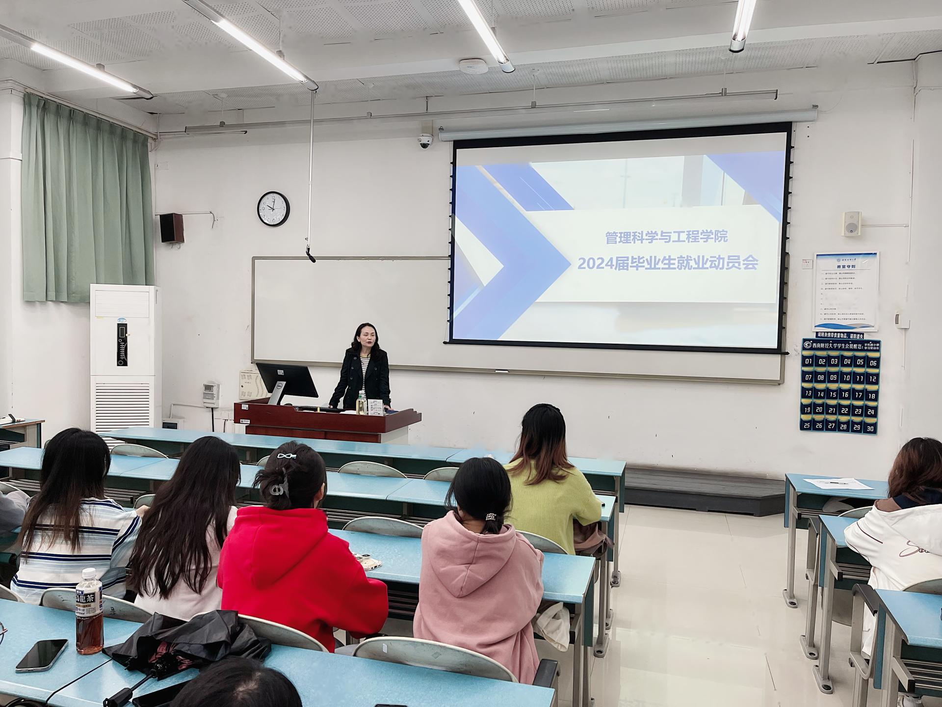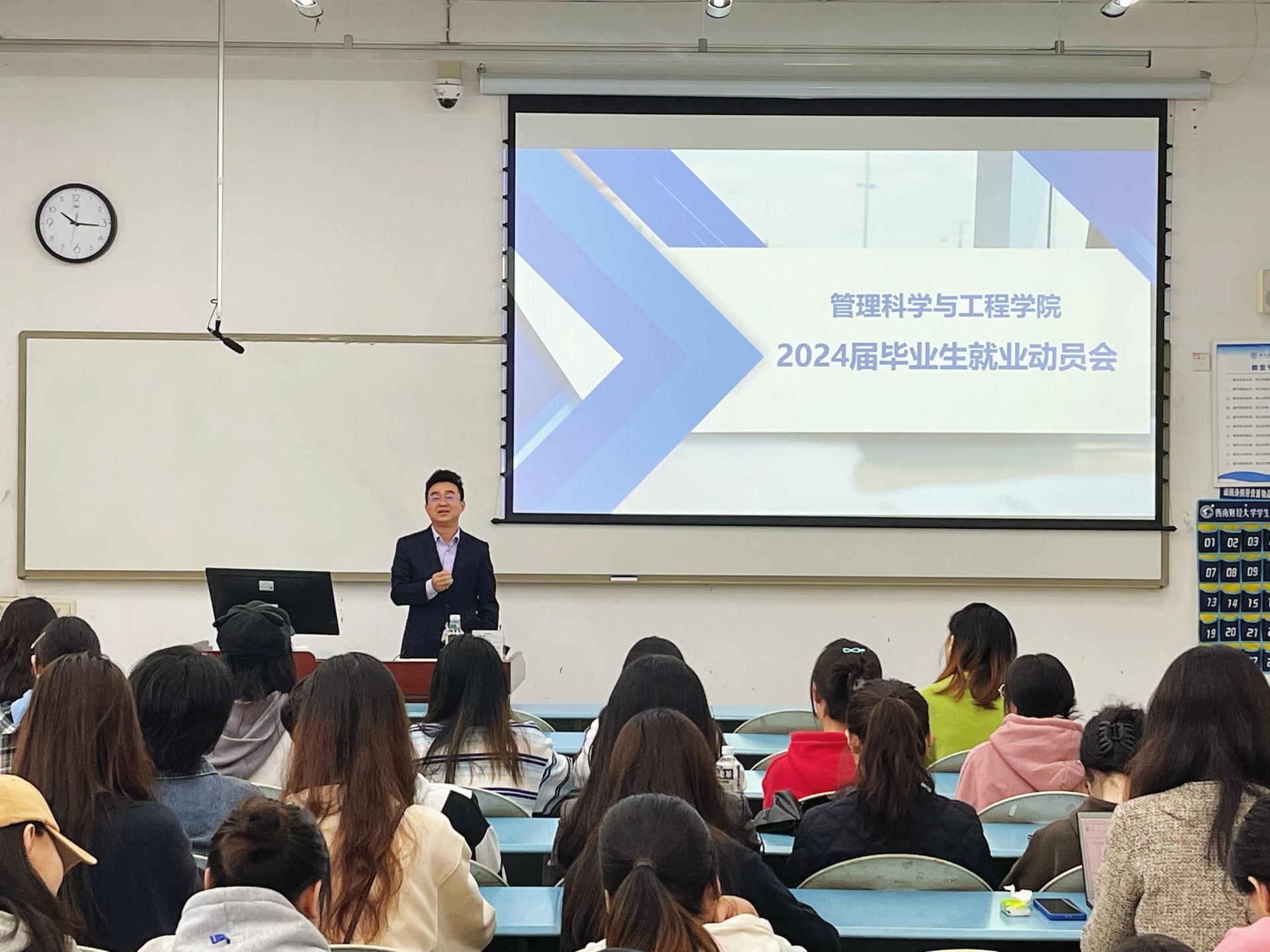 本次毕业生就业动员会的顺利召开,有利于2024届毕业生同学明晰就业态势,树立就业信心,激励毕业生积极主动就业。管理科学与工程学院将继续以习近平新时代中国特色社会主义思想为指导,完善就业育人体系,扎实做好2024届毕业生就业管理服务工作,多举措促进毕业生实现更高质量就业。