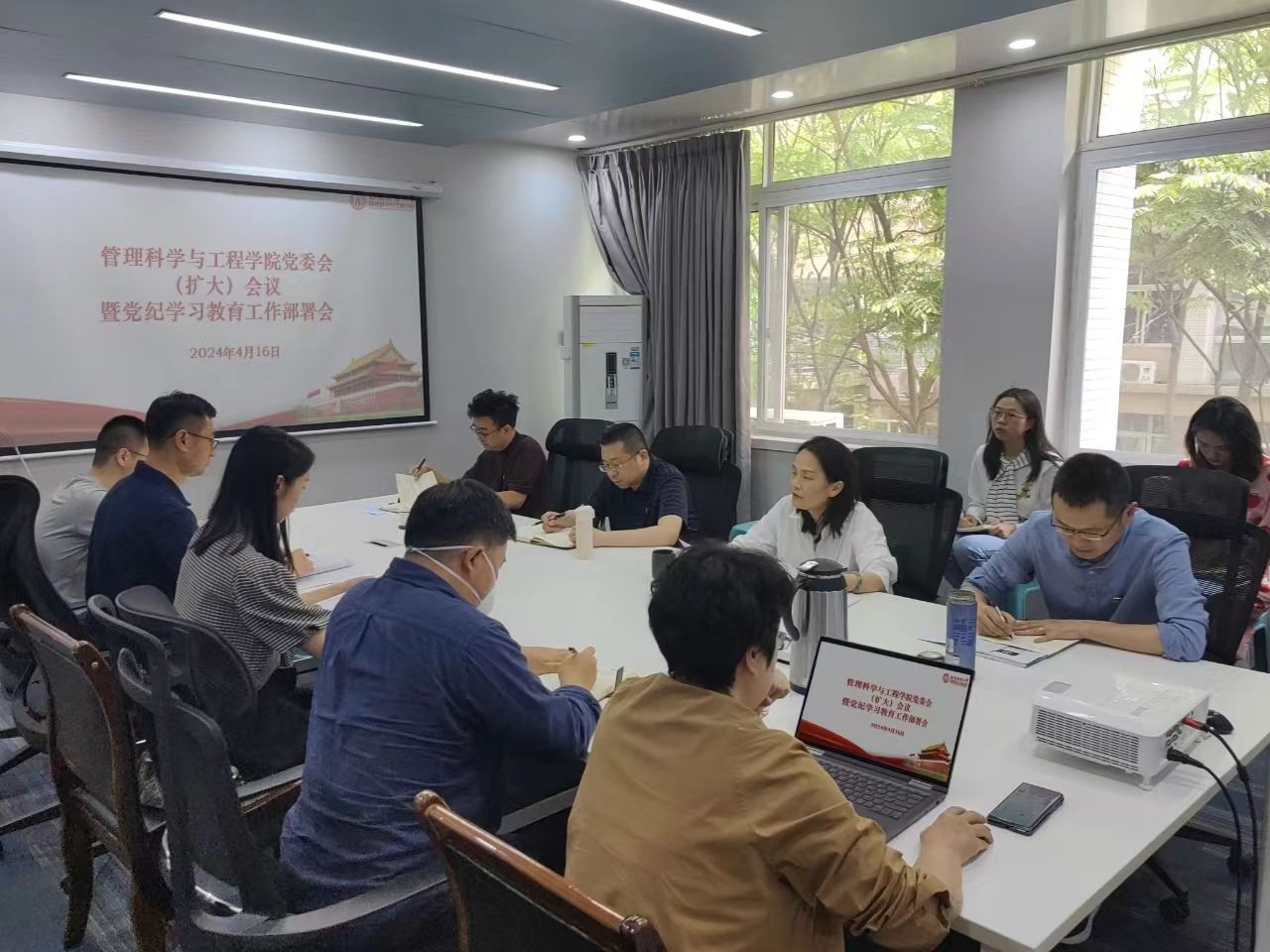 416日,学院党委书记周敏主持召开院党委会(扩大)会议暨党纪学习教育工作部署会,传达学习习近平总书记关于党纪学习教育的重要讲话和重要指示精神,学习贯彻中央党的建设工作领导小组会议和教育部党组、学校党委有关党纪学习教育会议精神,研究部署学院党纪学习教育工作。学院党委委员、纪委委员和各师生党支部书记参加会议。
