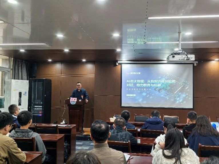 讲座中,吴超以企业家视角,围绕“AI”、“大数据”等,分享了AI与大数据在现代教育科研中的价值、智能对话机器人在管理与教学中的角色、AI在数据治理中的应用、校企合作推动AI技术在教育中的实用化以及教育与科研的AI未来,从AI技术应用的角度带来了一场精彩讲座。