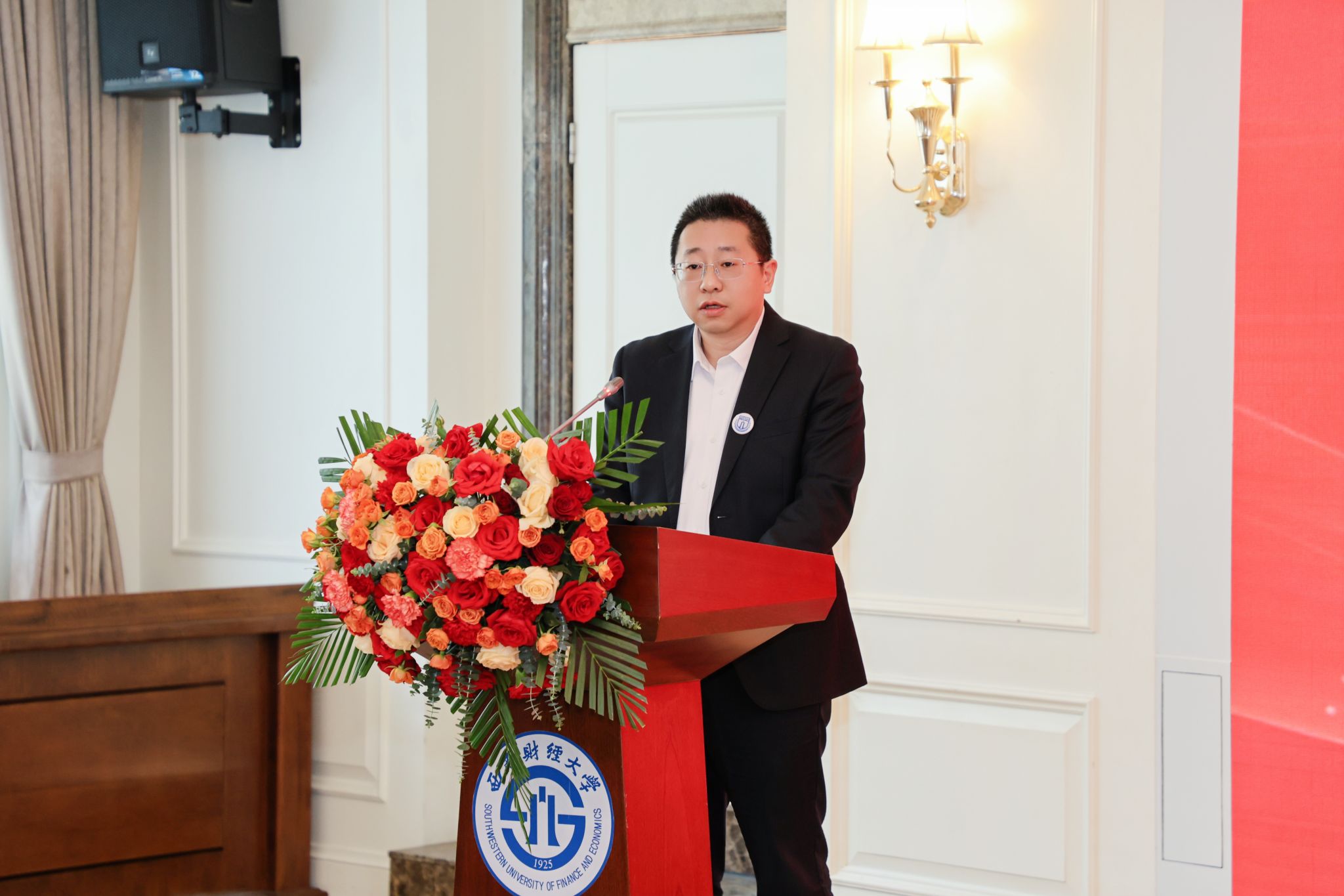 2003级校友施敏担任学院成都校友会首任秘书长并发言。他为母校取得的成就和学院发展的成绩感到自豪。他表示,学院成都校友会不仅是联络校友情感的纽带,更是信息交流的平台和事业发展的助推器,校友会将秉承“服务校友、联络感情、促进合作、共谋发展”的宗旨,凝聚校友情感、传承西财精神、促进合作共赢,为学院发展助力、为母校百年华诞献礼。