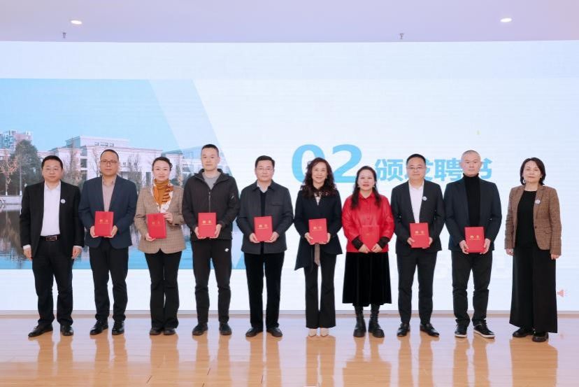 学院党委书记周敏宣读聘任导师名单,王尧、巴曙松、许小青、牟蜀锋、罗莉、施敏、顾娟、谢均源8位行业专家接受聘任,周书记与鲁院长共同为校外导师们颁发聘书。