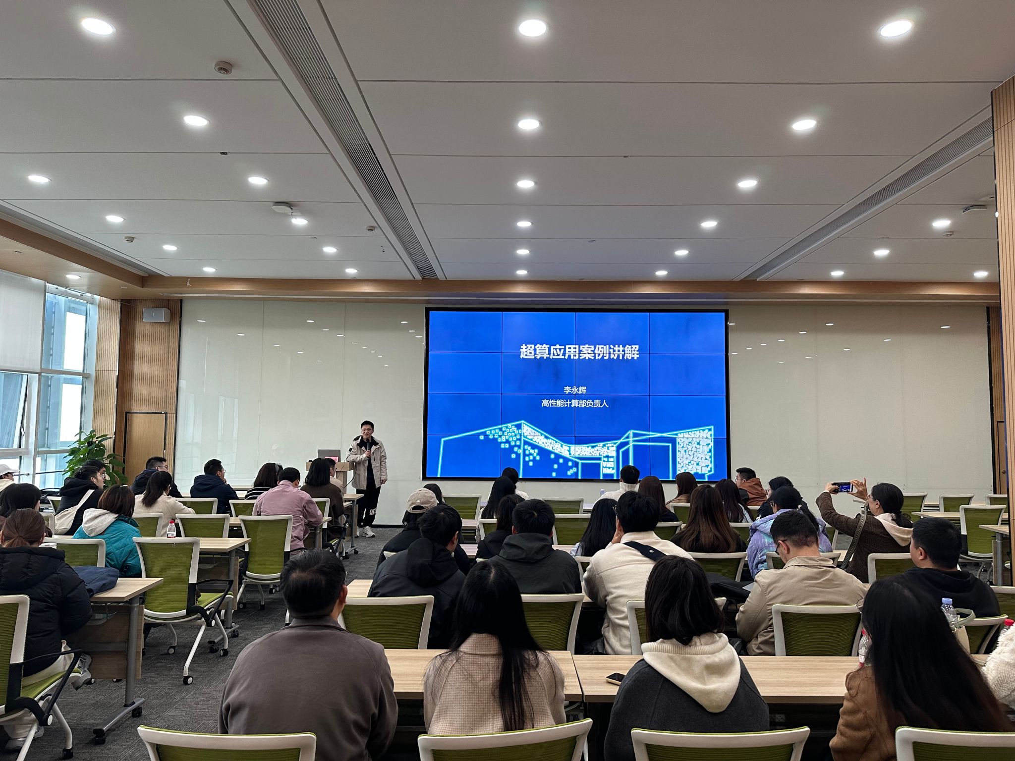 同学们走进超算展厅实地参观,近距离感受国之重器的硬核魅力,全面了解超级计算的发展脉络、核心技术及应用生态。在技术交流环节,高性能计算部负责人李永辉结合实际案例,生动介绍了超算在灾害预警、宇宙线观测、城市治理等领域的创新应用。比如,国家超级计算成都中心在泥石流灾害预警中提前两小时成功预警,避免了人员伤亡;与地震研究机构合作开发的地震波大模型,提高了地震监测和灾害预警的精准度;为高海拔宇宙线观测站提供强大算力支持,助力科研团队处理海量科学数据,与华西医院合作开展罕见病等科学研究。此外,他还深入剖析了超算与大数据、人工智能、量子计算等前沿技术的发展路径,清晰描绘出算力赋能项目管理的创新图景,让同学们直观感受到技术变革对行业发展的深远影响。