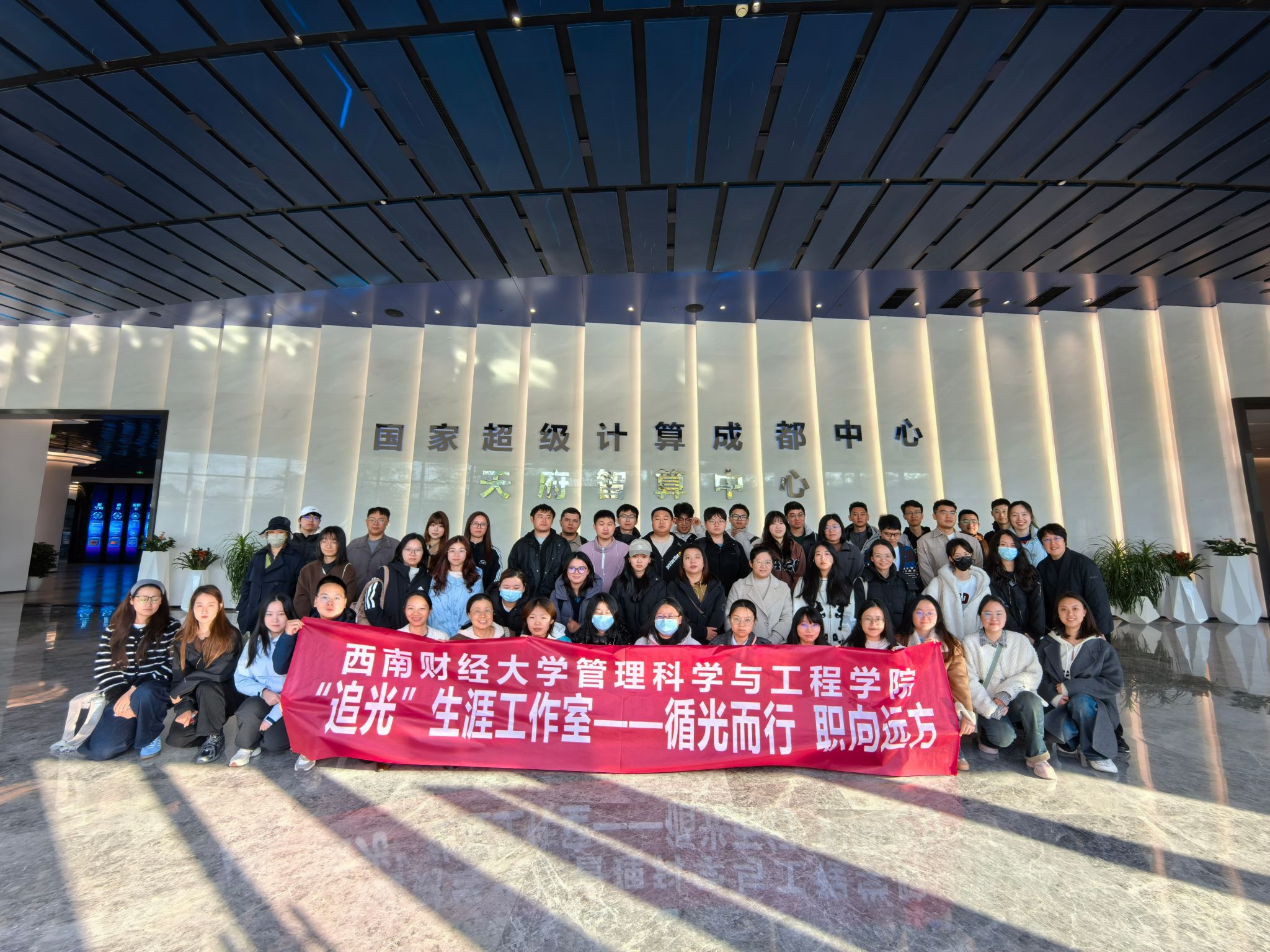 工程管理硕士教育中心联合学院辅导员“追光”生涯工作室,组织项目管理专业师生赴国家超级计算成都中心开展校外实践教学活动。