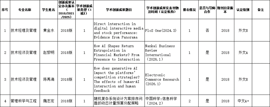 根据《ebook漫画 博士生申请学位学术创新成果认定办法》和ebook漫画 相应专业的博士生培养方案要求及科研成果发表的相关规定,学院对相关博士生的学术创新成果及科研情况进行了审核,现将结果予以公示。公示期15日,即自2026年4月14日至4月28日,在此期间若有异议,请及时反馈学院。